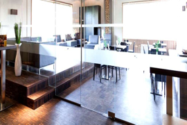 Se realiza en cristal templado o laminado de seguridad para oficinas, casas, negocios en cristal incoloro o con película, instalados con accesorios en acero inoxidable o aluminio.
